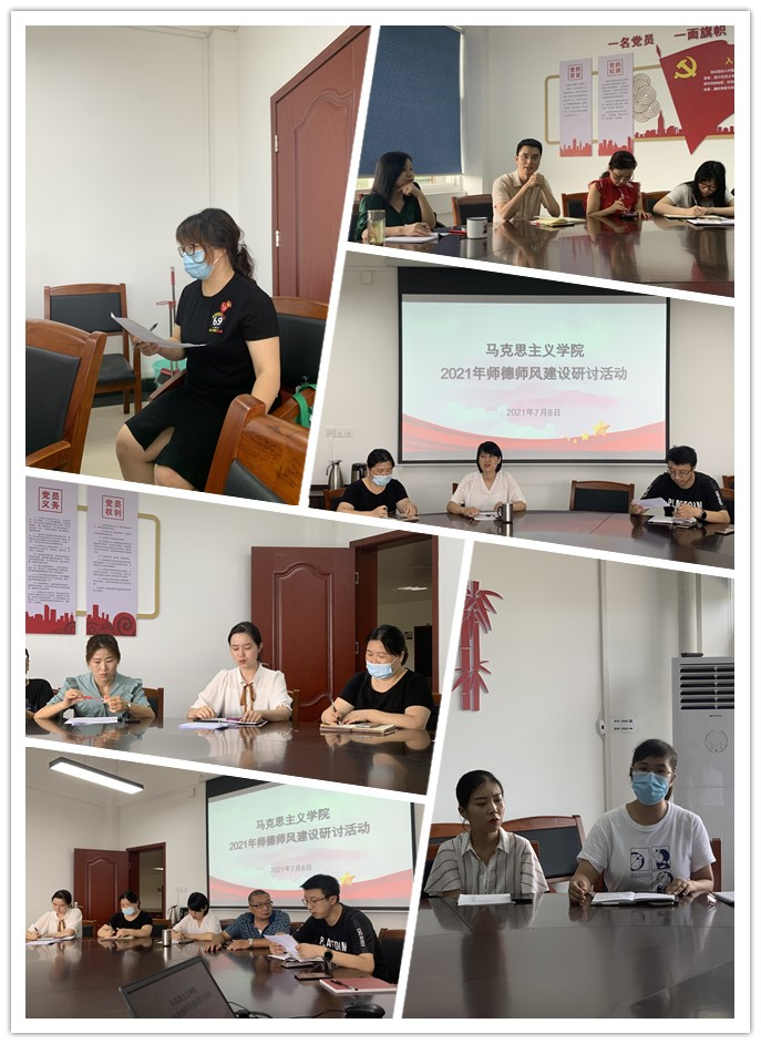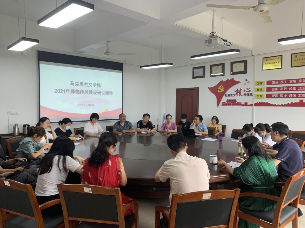 (通讯员:叶玉姝)7月8日下午13:30,马克思主义学院在学院会议室组织2021年师德师风建设研讨活动,活动由学院党总支书记张国华主持,全体教职工参加了此次研讨活动。