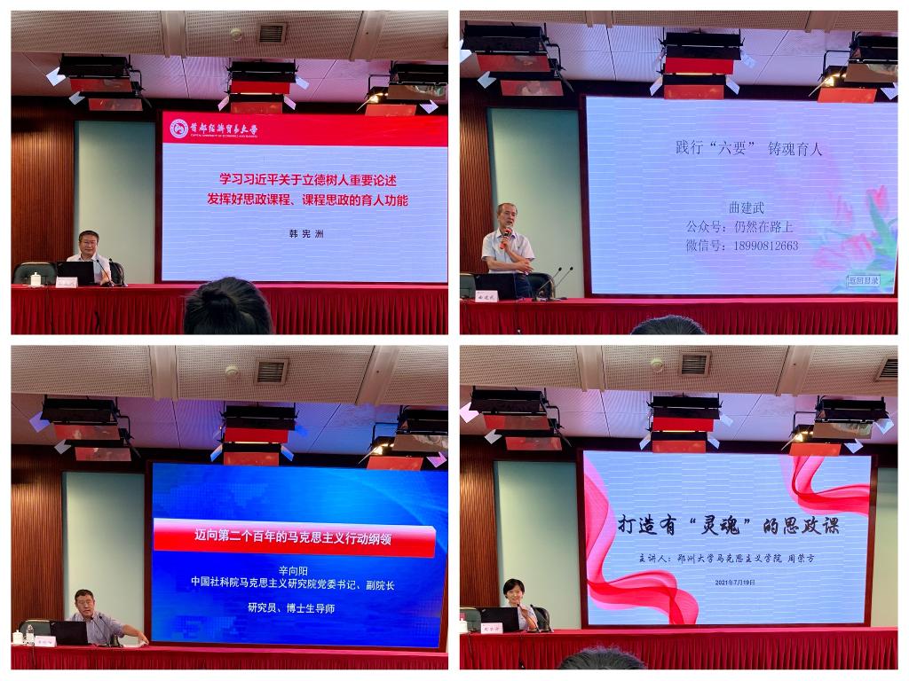 本次培训特邀教育部“高职高专思想政治理论课”分教学指导委员会主任委员韩宪洲、全国“时代楷模”曲建武、中国社会科学院马克思主义研究院党委书记辛向阳、中国人民大学马克思主义学院副院长张晓萌、北京大学马克思主义学院副院长陈培永、中国地质大学马克思主义学院院长杨峻岭、郑州大学马克思主义学院教师周荣方等业内专家名家为学员上课。培训内容主要包括“学习习近平关于立德树人的重要论述,发挥好思政课程、课程思政的育人功能”,“践行六要,铸魂育人”,“学习习近平总书记在中国共产党成立 100 周年庆祝大会上的重要讲话”等。