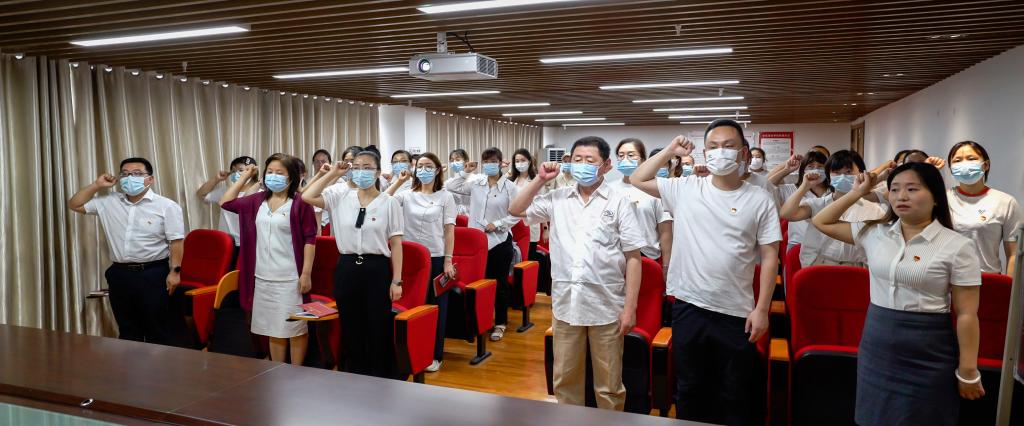 首先,郭晓雯书记带领大家重温入党誓词,集体诵读党章总纲(节选),并集中交纳6月党费。