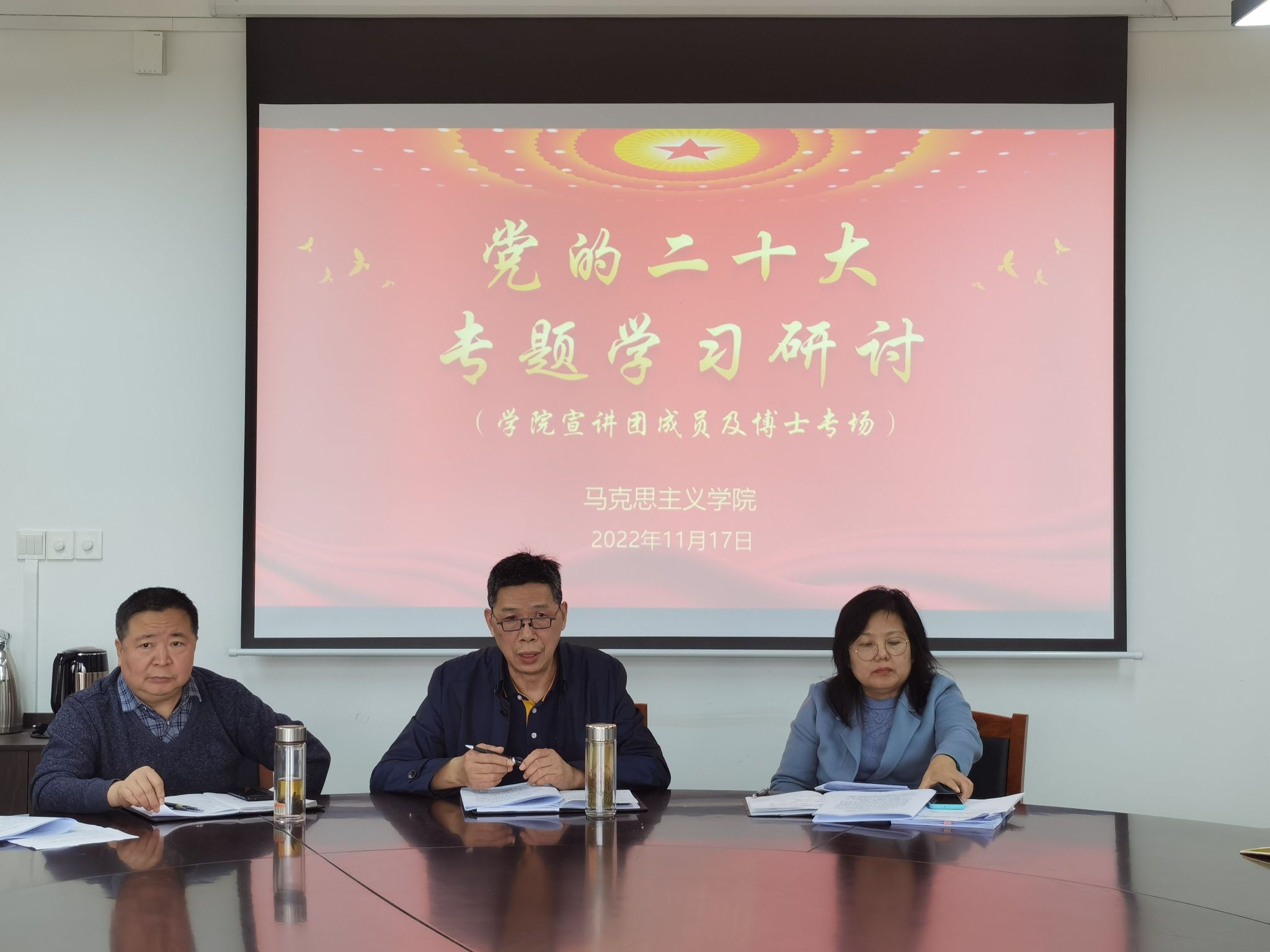 (通讯员:安心仪)为认真做好党的二十大精神学习与宣讲,2022年11月17日下午,马克思主义学院组织学院宣讲团成员及博士开展党的二十大专题学习研讨,会议由学院党总支书记张国华主持。