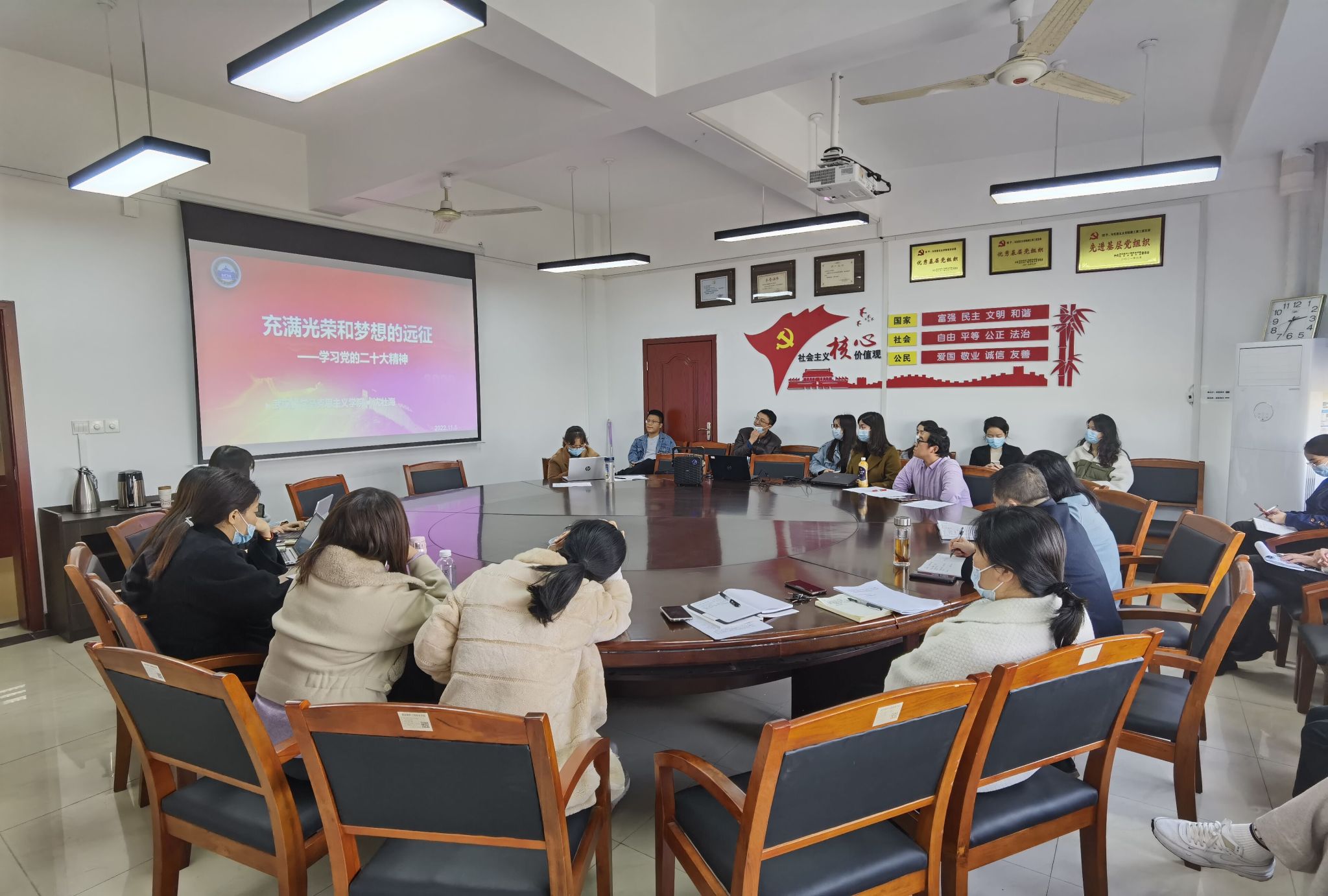 (通讯员:安心仪)11月24日下午,马克思主义学院全体教师齐聚会议室,集中观看省委宣讲团成员、武汉大学党委副书记沈壮海专题讲座“充满光荣和梦想的远征——学习党的二十大精神”。