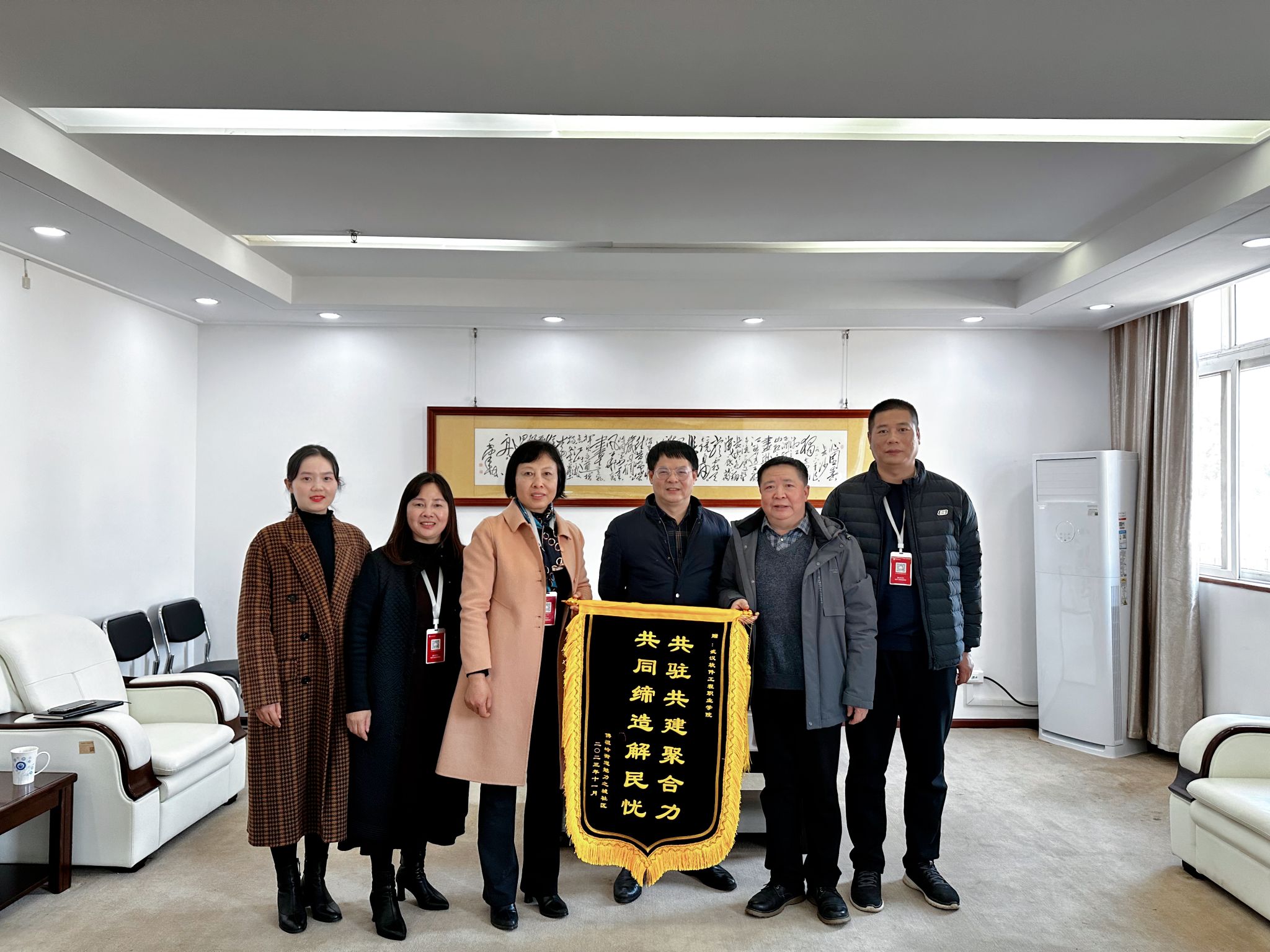 (通讯员:刘逸夫)12月5日上午10点,武汉市东湖高新区佛祖岭街道魅力之城社区党委书记舒帮秀、副书记刘惠琴、党委委员舒勇等一行四人来到学校,代表社区向学校赠送“共驻共建聚合力 共同缔造解民忧”的锦旗,对马克思主义学院青年干部郭晓雯挂职社区一年、全力协助社区开展基层治理工作表示衷心感谢。党委组织部(统战部、离退休工作处)部长胡广龙代表学校接受锦旗。