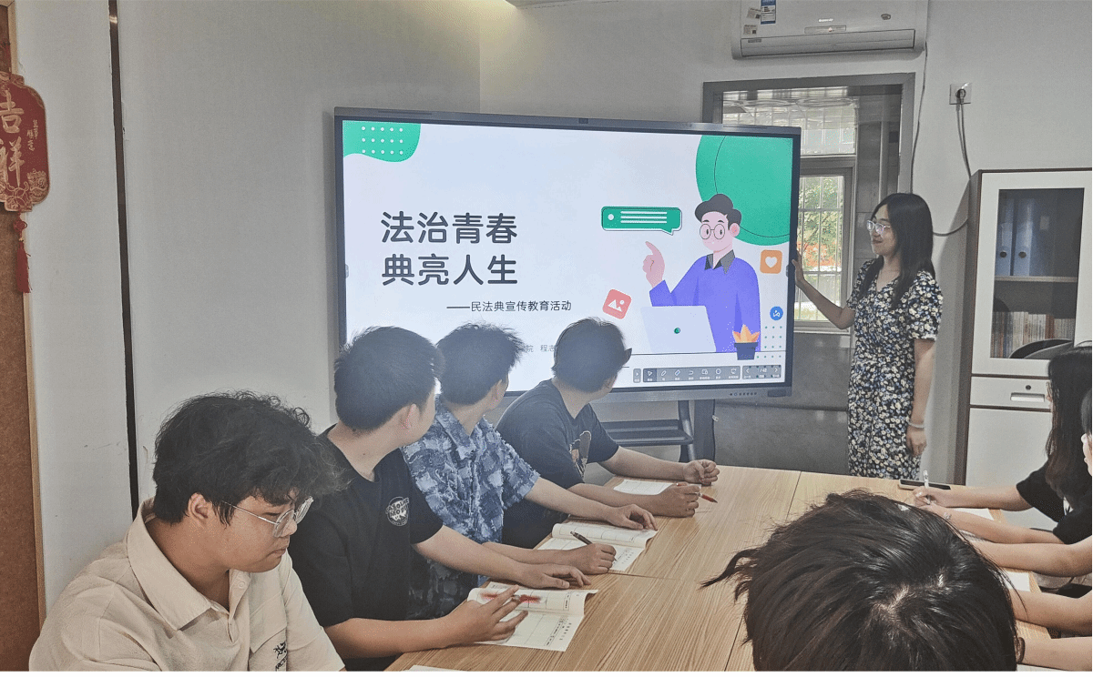 2024年5月是第四个“民法典宣传月”,为推进民法典进校园走深走实,营造学生积极尊法、学法、守法、用法的良好氛围,近日,我院青年教师程志颖走进信息学院学生一站式社区,以“法治青春,典亮人生”为主题,开展一场别开生面的民法典宣传教育活动。