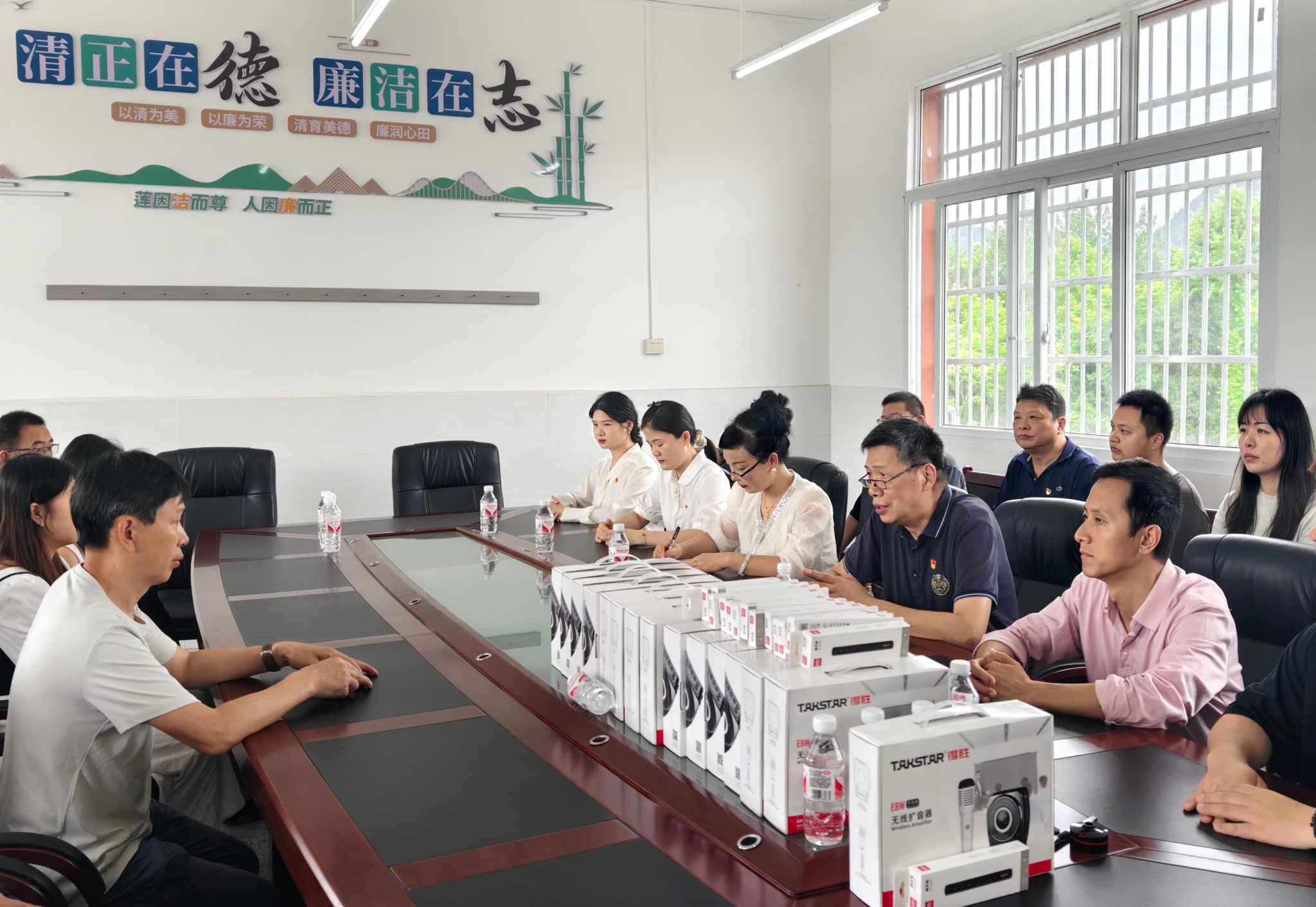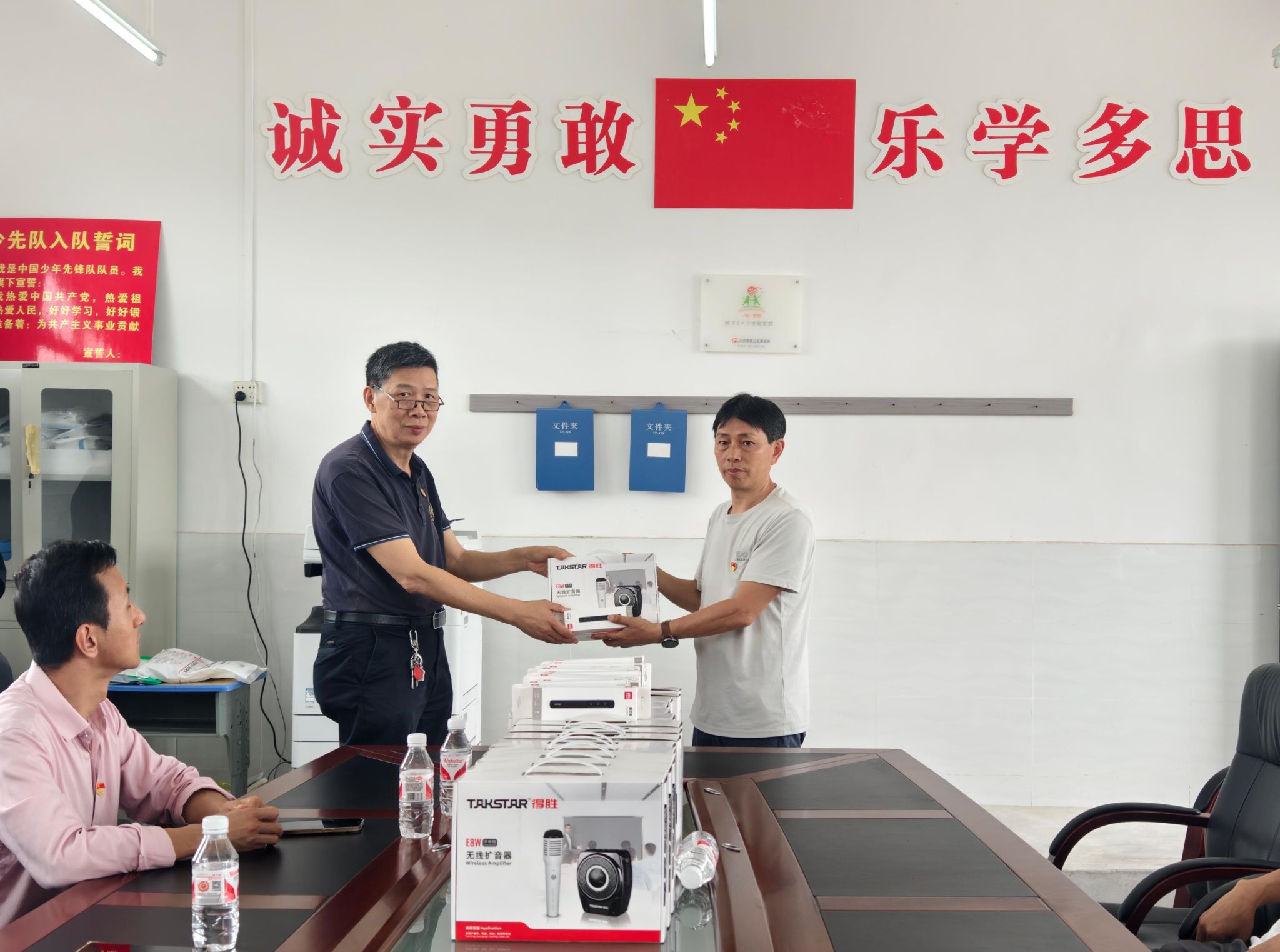 在枫洞小学会议室里,我校思政课教师与枫洞小学老师们围绕教学方法、课程设计、学生培养等方面展开热烈讨论,互相分享教学心得与经验,共同探讨乡村教育发展中遇到的问题与解决之道。借此机会,我校马克思主义学院也为乡村教育送上了一份特别的关爱——给枫洞小学老师们精心准备的教学扩音器和翻页笔。马克思主义学院党总支书记张国华说道:“教育是国之大计、民生之本,更是乡村振兴的基石。希望这批教学辅助用具对老师们有用、对乡村教育有效!”