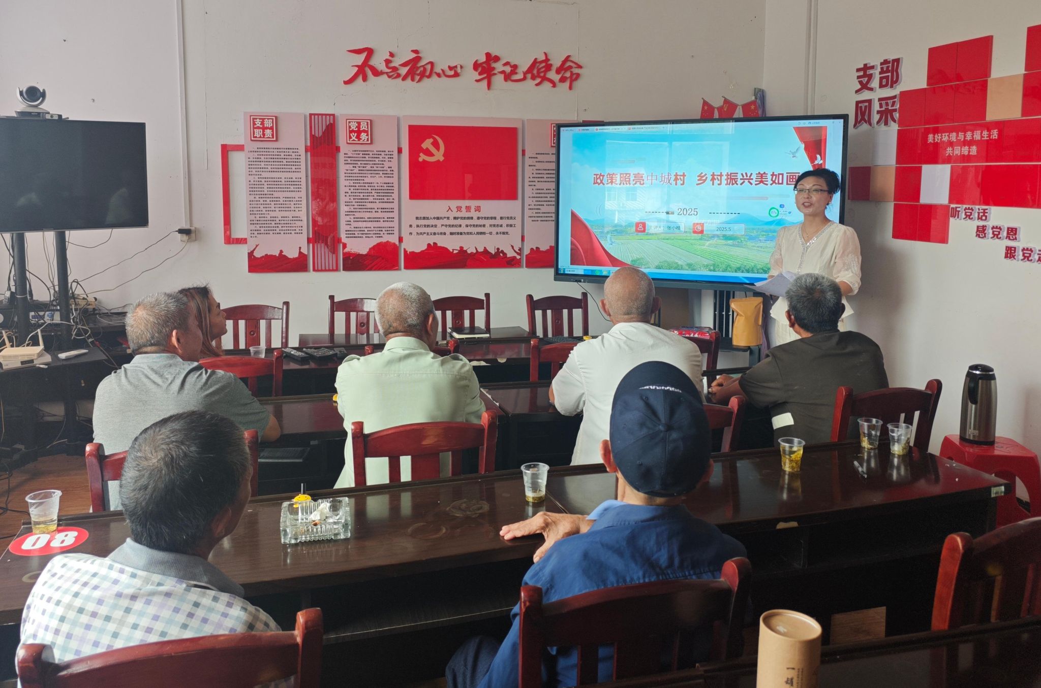 在百福司镇中城村,张小枝老师正通过问答的形式开始今天的宣讲活动。张小枝老师以“政策照亮中城村 乡村振兴美如画”为题,立足当地黑稻种植、藤茶加工等特色产业,解读党的二十大报告中关于乡村振兴的战略部署,将“绿水青山就是金山银山”的发展理念具象化为特色产业经济图景,让理论宣讲既有乡土温度又有实践深度,推动新思想在基层群众中走“新”更走心,为乡村振兴注入持续动能。不少村民表示:“以前觉得党的理论离得远,现在通过这样接地气的宣讲,才明白这些政策跟我们的好日子息息相关。”