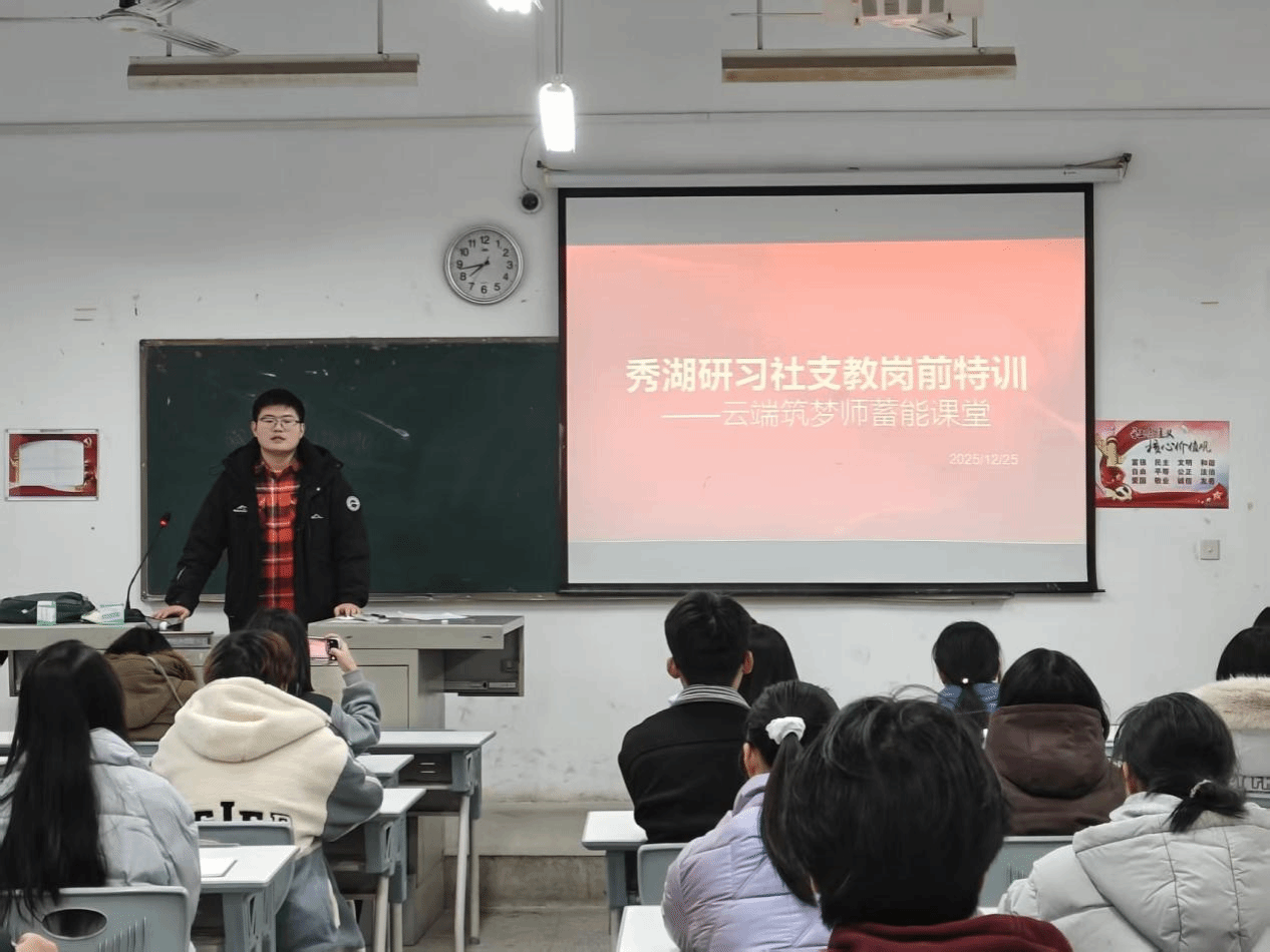 (通讯员:李金泽)2025年12月25日下午,马克思主义学院指导的思政类社团“秀湖研习社”在学院教师李金泽的指导下,成功组织开展“梦想云课堂”云端支教项目志愿者培训活动。本次培训旨在推动思政教育与社会实践深度融合,引导学生运用专业知识服务社会,助力教育公平与乡村振兴。