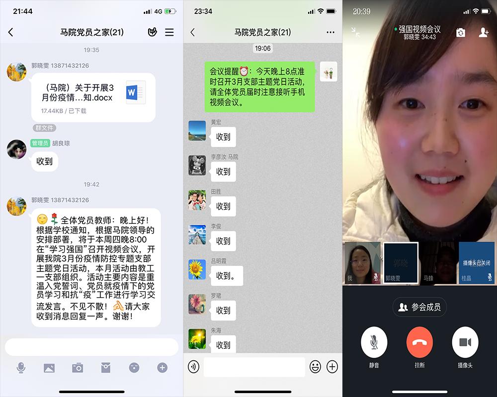 3月12日晚上8:00,马克思主义学院党总支21名党员干部“相聚”“学习强国”平台,以召开视频会议的方式进行了一次特殊的支部主题党日活动。校党委书记马蜂以普通党员身份参加了此次活动。马院教工一支部书记郭晓雯主持了本次学习活动。