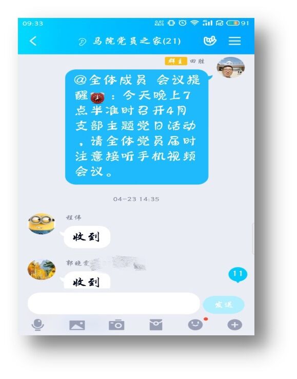4月23日晚上7: 30,马克思主义学院党总支21名党员再次相聚“学习强国”平台,以召开视频会议的方式开展4月支部主题党日活动。校党委书记马蜂以普通党员身份参加此次活动。马院教工二支部书记田胜主持本次活动。