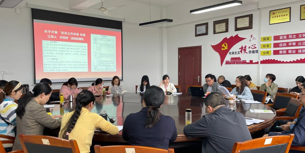 最后,党总支书记张国华强调全体党员必须按要求完成每日学习强国学习任务和本年度下沉社区任务,并做对2022年度“党员公开承诺 创建‘三育人’示范岗”活动进行了安排和布置。