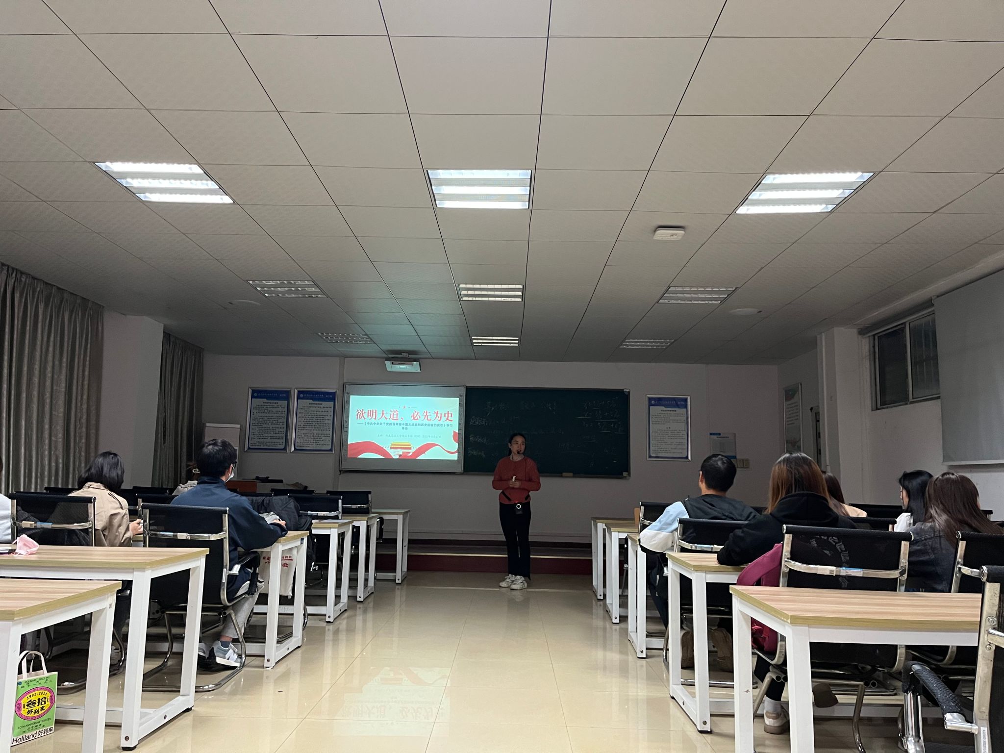 王东丽老师以“欲明大道 必先为史”为主题,于10月17日晚6点为文旅学院入党积极分子讲党课,分享自身学习《中共中央关于党的百年奋斗重大成就和历史经验的决议》心得体会。她介绍了制定《历史决议》的必要性,通过准确把握党百年奋斗在实现中华民族伟大复兴进程中的科学定位、党百年奋斗历史意义的内在逻辑,总结十条历史经验,引导同学们正方向、修德性、强本领、开新局。王老师的精彩讲座使学生们对中国共产党百年光辉历程有了深刻的了解,学生们纷纷表示受益匪浅。