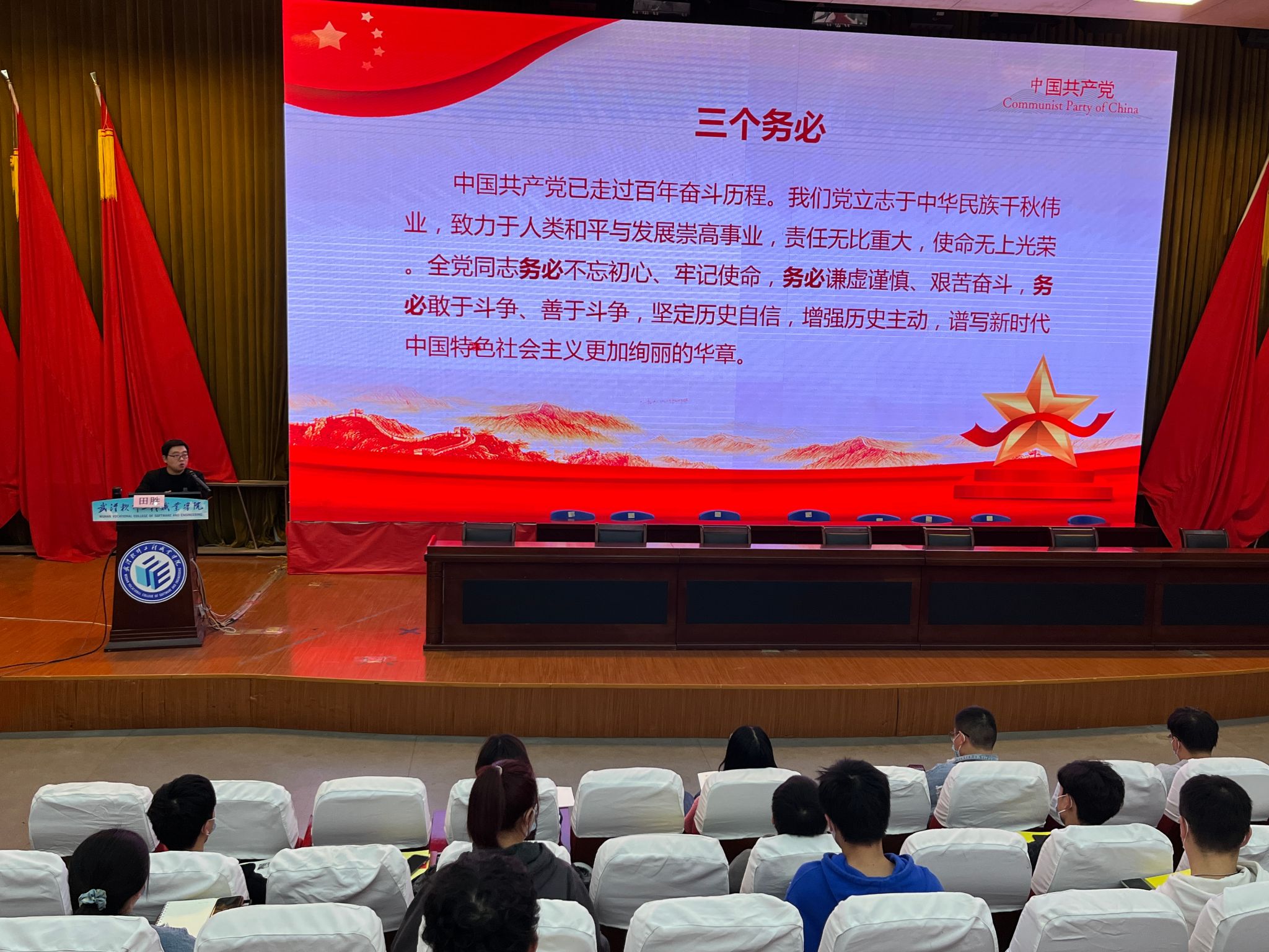 程伟教授以“光辉的历程(1921-2022)——中国共产党党史解读”为题,于10月28号为为学校第30期党员发展对象培训班授课。她先从党史发展脉络及学习意义讲起,再通过讲解党在新民主主义革命时期、社会主义革命和建设时期、改革开放和社会主义现代化建设时期、中国特色社会主义进入新时代的重大历史事件,将党的百年奋斗征程娓娓道来,坚定文化自信,最后与学生交流学党史的心得体会,学习党史能进一步坚定我们的道路自信、理论自信和制度自信。她号召青年大学生们要不忘历史,学习历史,坚定不移听党话、跟党走,立志做有理想、敢担当、能吃苦、肯奋斗的新时代好青年。