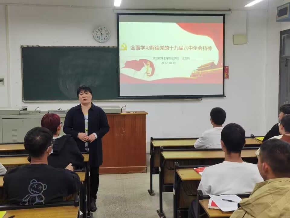 王军梅老师于10月19日18:00以“全面学习解读党的十九届六中全会精神”为主题,从党的十九届六中全会概况和重大意义、解读《中共中央关于党的百年奋斗重大成就和历史经验的决议》、如何认真学习贯彻党的十九届六中全会精神三个方面为机械学院入党积极分子讲党课。她联系学生实际,结合党的二十大,引导学生深刻认识党的百年奋斗的初心使命和重大成就,对学员们的思维方式、价值取向、行为选择进行了正确的引导。党课内容精彩、贴合大学生实际,具有深刻的启发意义。