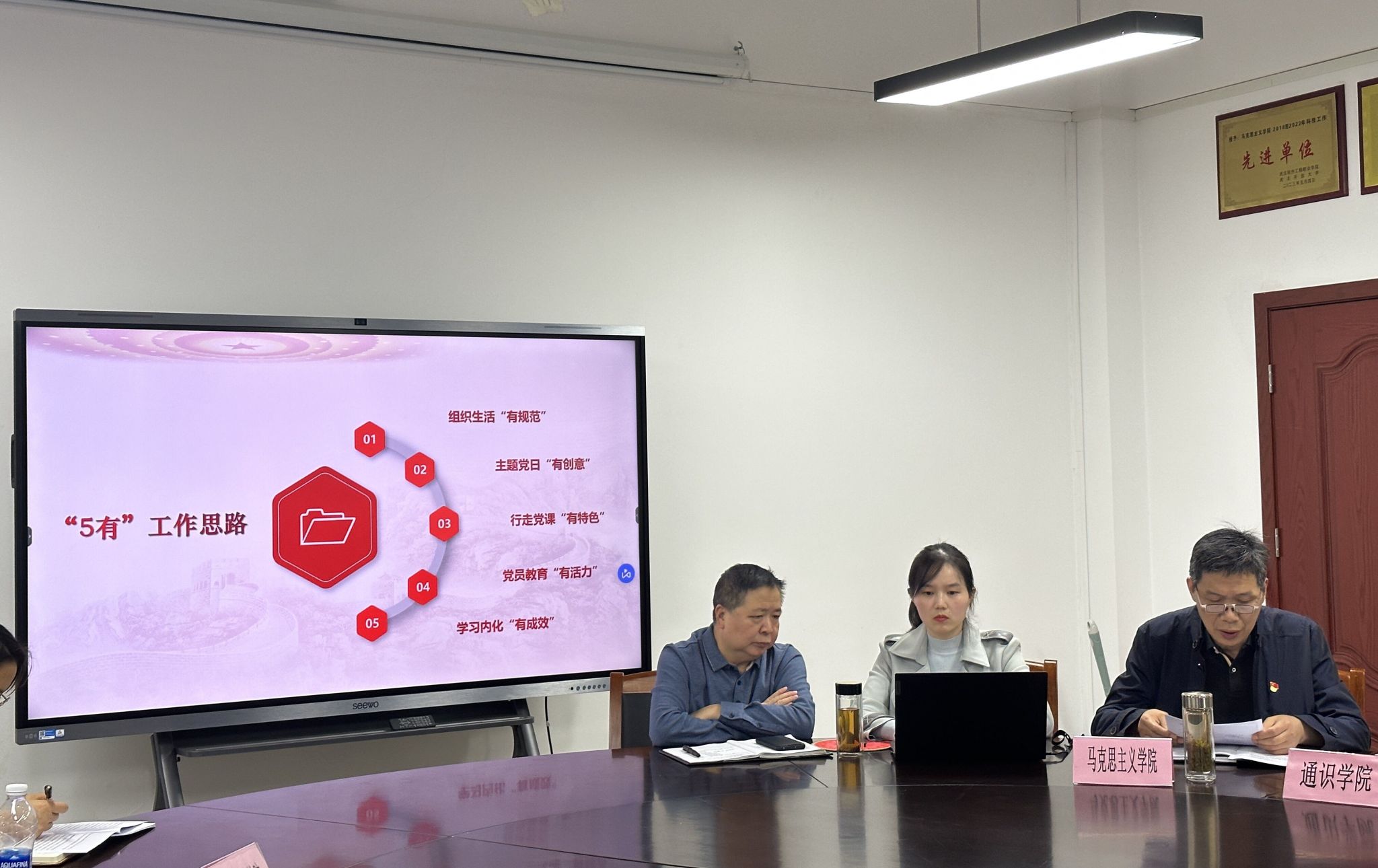 李斯怡部长代表党委组织部对马院样板支部建设工作进行了指导和相关工作提示,为下一步更好地推动样板支部建设指明了方向,提供了保障。