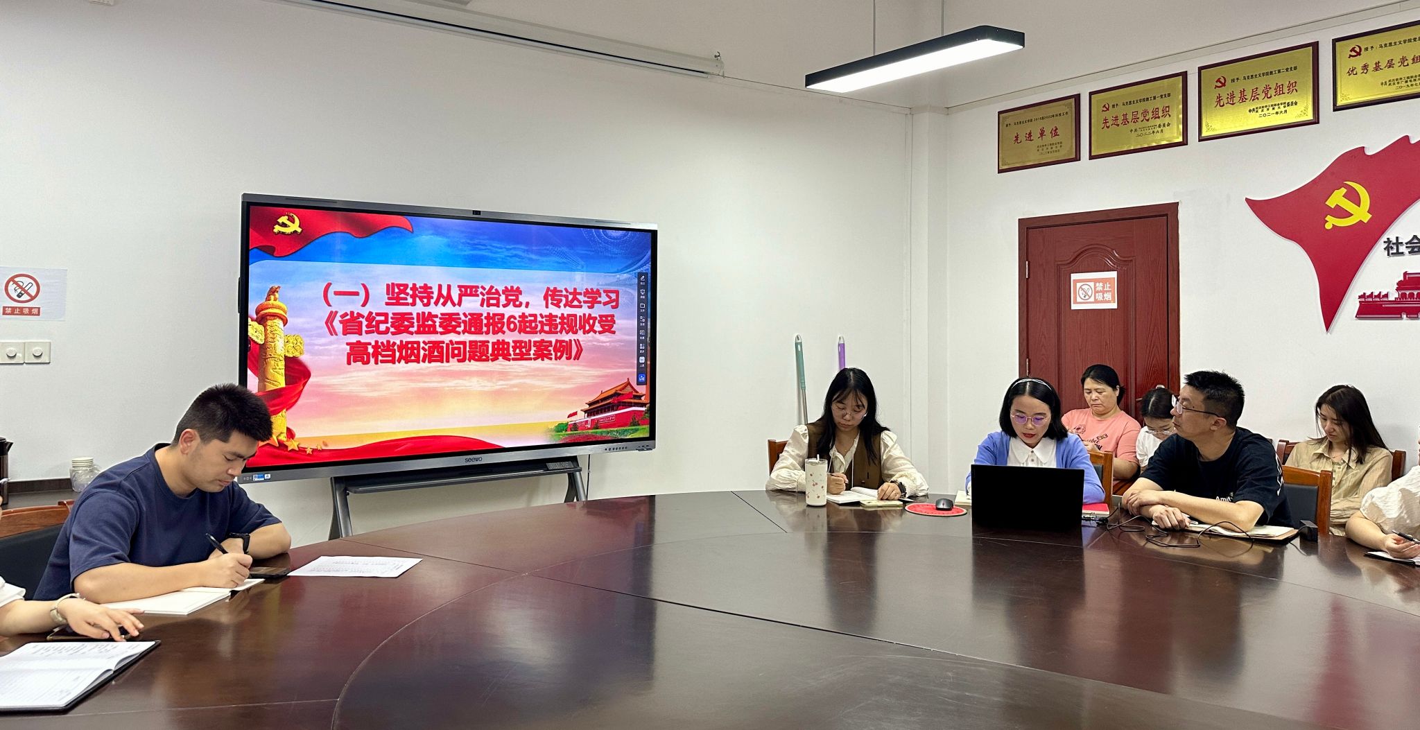 随后,支部委员王东丽带领全体党员开展集中学习,具体学习内容为:(一)坚持从严治党,传达学习《省纪委监委通报6起违规收受高档烟酒问题典型案例》;(二)认真学习贯彻习近平总书记近期重要讲话和重要指示批示精神,包括习近平主持召开全面推动黄河流域生态保护和高质量发展座谈会强调“以进一步全面深化改革为动力 开创黄河流域生态保护和高质量发展新局面”、习近平在甘肃考察时讲话精神“深化改革勇于创新苦干实干富民兴陇 奋力谱写中国式现代化甘肃篇章”、习近平在庆祝全国人民代表大会成立70周年大会上的讲话、习近平在庆祝中国人民政治协商会议成立75周年大会上的讲话、习近平向全国广大农民和工作在“三农”战线上的同志们致以节日祝贺和诚挚问候、习近平给普洱民族团结誓词碑盟誓代表后代的回信、习近平给中国传媒大学全体师生的回信、习近平在全国民族团结进步表彰大会上的讲话、习近平给中国一重产业工人代表的回信、习近平在国家勋章和国家荣誉称号颁授仪式上的讲话;(三)认真学习贯彻省、市有关重要会议精神,包括湖北省市厅级领导干部学习贯彻习近平新时代中国特色社会主义思想和党的二十届三中全会精神集中轮训班开班、中共武汉市委十四届八次全体会议,以及中共武汉市委十四届八次全体会议社论合集。