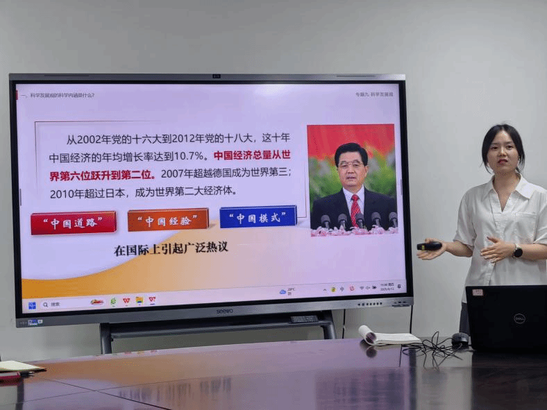 郭晓雯老师围绕 “推动经济社会发展是科学发展观的第一要义”,以武汉从“中国最大的县城”到“国家中心城市”的转型为线索,结合武钢降本增效案例阐释“转变经济发展方式”,以“武汉・中国光谷”技术突破说明“科技跨越式发展”,借“3551 光谷人才计划”解读“创新型人才培养”,同时结合党的十六大至党的十八大对“重要战略机遇期”的把握,强调“善抓机遇”的必要性,逻辑严密且案例鲜活。