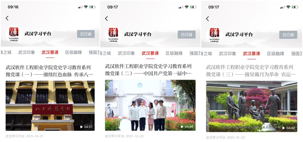 (通讯员:叶玉姝)2021年12月21日至23日,“学习强国”武汉学习平台-武汉慕课栏目相继发布我院党史学习教育系列微党课作品,…[详细]
