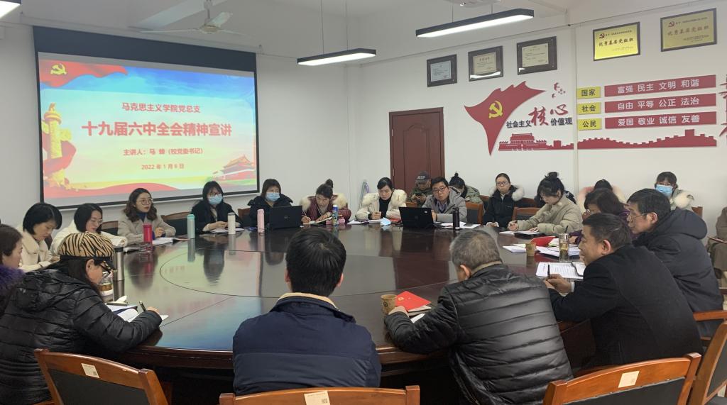(通讯员:叶玉姝)2022年1月6日下午,校党委书记马蜂来到马克思主义学院带头宣讲党的十九届六中全会精神,为马院全体党员同志…[详细]